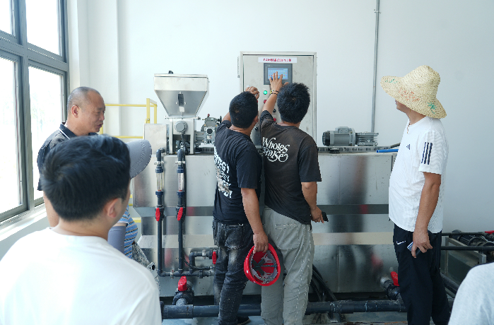 岷东片区水厂厂区的功能分区一目了然,各区域井然有序。厂房内,技术人员正对设备进行细致检测,并同步开展制水工作。